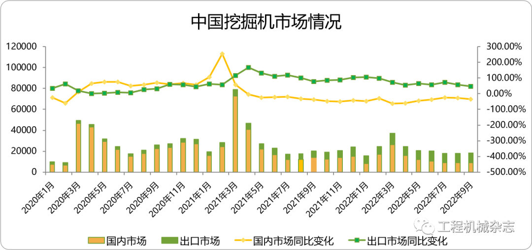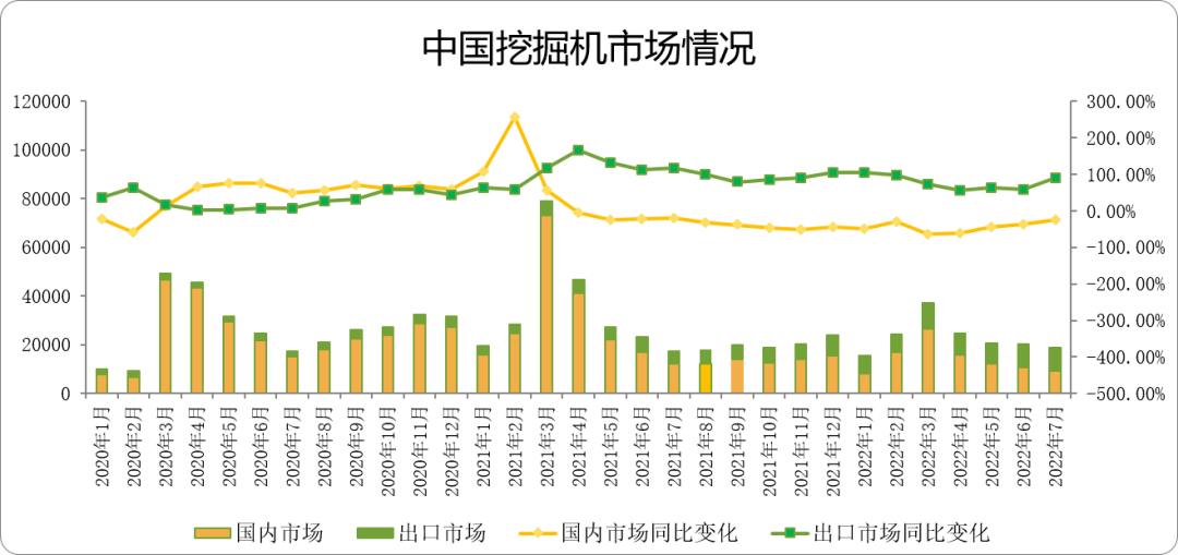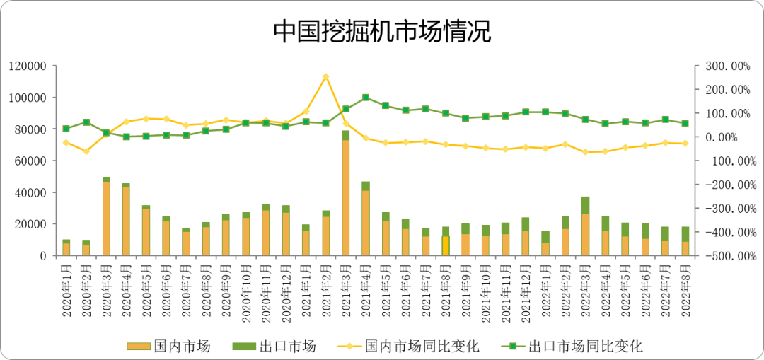 根据中国工程机械工业协会行业统计数据,2022年1—8月纳入统计的26家主机制造企业,共计销售各类挖掘机械产品179,109台,同比下降30.9%。其中,国内市场销量109,470台,同比下降49.9%;出口销量69,639台,同比增长70.…......